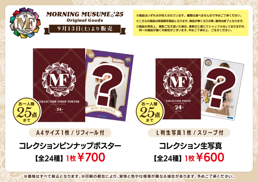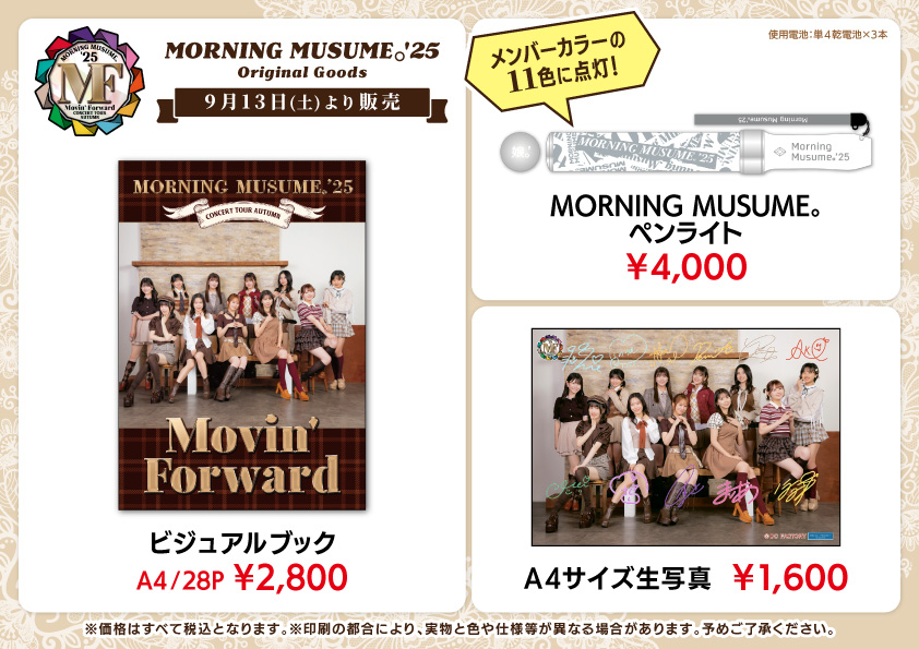 引用元:モーニング娘。’25 コンサートツアー秋 ~Movin’ Forward~ グッズ公開!